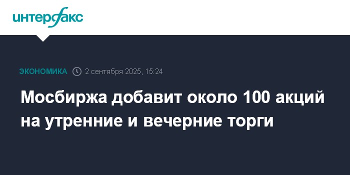 Москва. 2 сентября. INTERFAX.RU - "Московская биржа" с 5 сентября добавит на утреннюю и вечернюю торговые сессии еще 98 акций российских компаний, говорится в сообщении площадки.