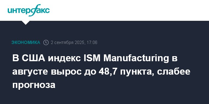 В США индекс ISM Manufacturing в августе вырос до 48,7 пункта, слабее прогноза