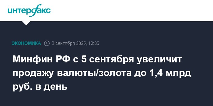 Минфин РФ с 5 сентября увеличит продажу валюты/золота до 1,4 млрд руб. в день