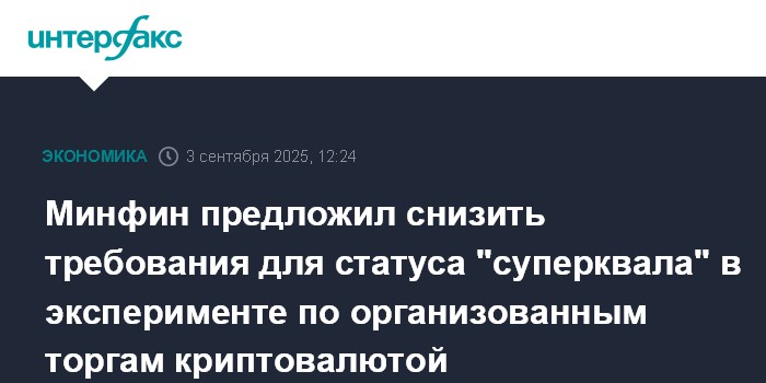 Минфин предложил снизить требования для статуса "суперквала" в эксперименте по организованным торгам криптовалютой