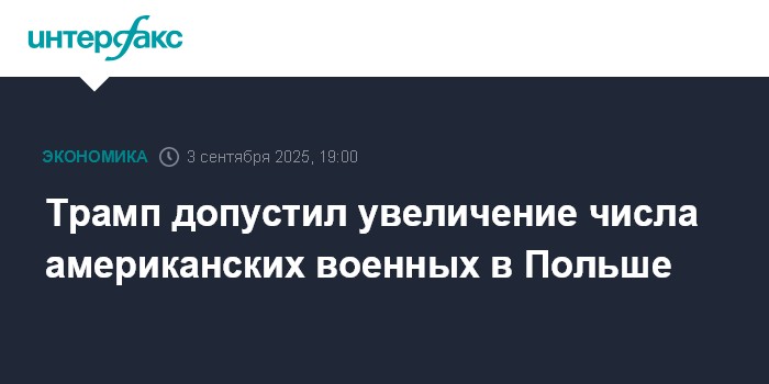 Москва. 3 сентября. INTERFAX.RU - Президент США Дональд Трамп заявил, что американских военных не панируется выводить из Польши, возможно увеличение их контингента.