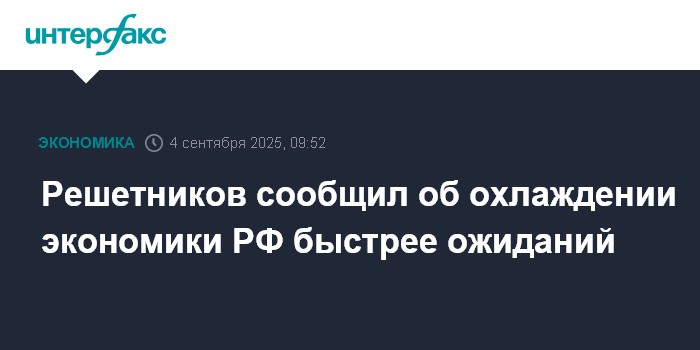 "Последние данные говорят о том, что экономика охлаждается быстрее, чем ожидалось", - сказал Решетников.