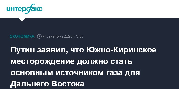 Москва. 4 сентября. INTERFAX.RU - Газификация Дальнего Востока в перспективе должна быть обеспечена за счет ввода Южно-Киринского месторождения на шельфе Сахалина, заявил президент РФ Владимир Путин в ходе совещания, посвященного развитию топливно-энергетического комплекса региона, на Восточном экономическом форуме (ВЭФ-2025).