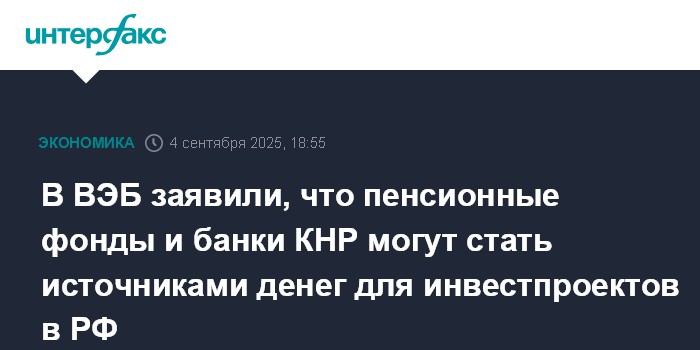В ВЭБ заявили, что пенсионные фонды и банки КНР могут стать источниками денег для инвестпроектов в РФ