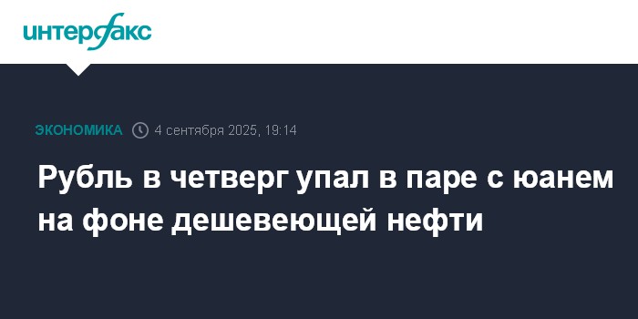 Рубль в четверг упал в паре с юанем на фоне дешевеющей нефти