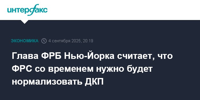 Глава ФРБ Нью-Йорка считает, что ФРС со временем нужно будет нормализовать ДКП