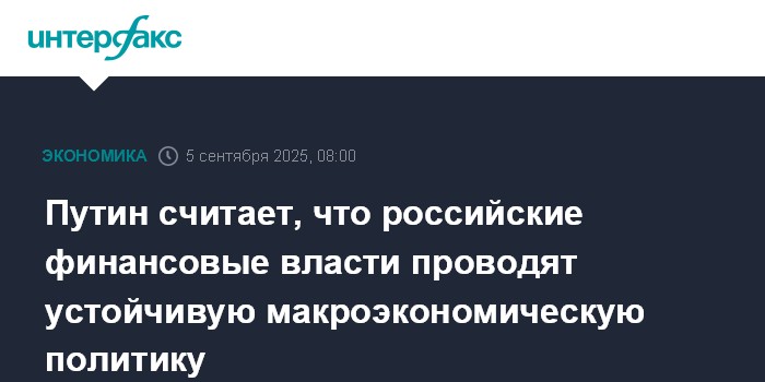Путин считает, что российские финансовые власти проводят устойчивую макроэкономическую политику