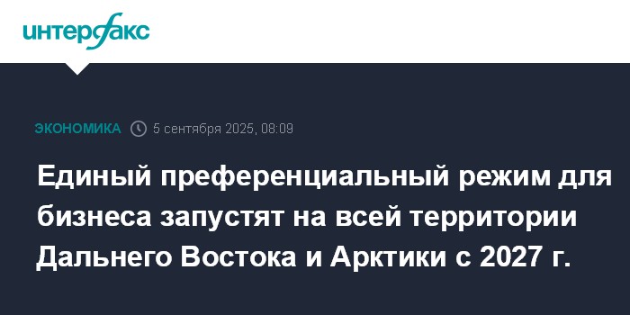 Единый преференциальный режим для бизнеса запустят на всей территории Дальнего Востока и Арктики с 2027 г.