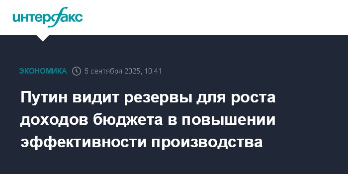 Москва. 5 сентября. INTERFAX.RU - Президент РФ Владимир Путин считает необходимым работать над доходной частью федерального бюджета, отмечает, что резервы для ее увеличения есть в повышении эффективности производства и росте производительности труда.