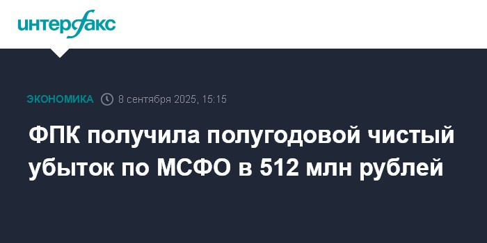 ФПК получила полугодовой чистый убыток по МСФО в 512 млн рублей