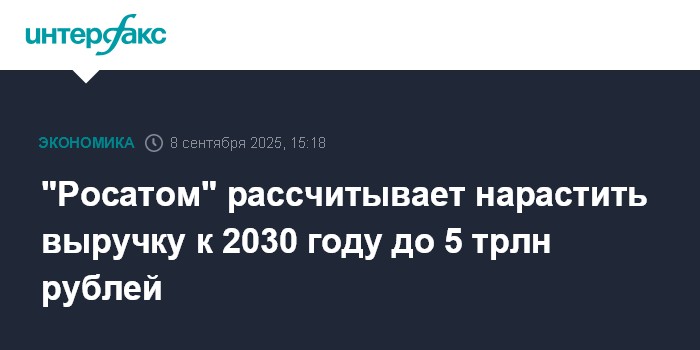Москва. 8 сентября. INTERFAX.RU - Выручка госкорпорации "Росатом" к 2030 году должна вырасти до 5 трлн рублей – такой стратегический показатель прописан в отчете компании за 2024 год.