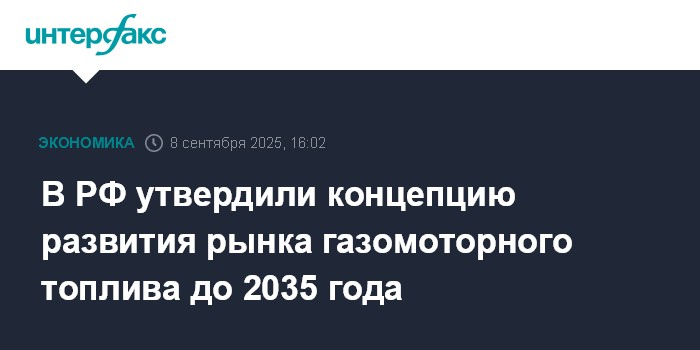 Москва. 8 сентября. INTERFAX.RU - Правительство РФ утвердило Концепцию развития рынка газомоторного топлива до 2035 года, сообщил премьер-министр Михаил Мишустин в ходе еженедельного совещания с вице-премьерами.