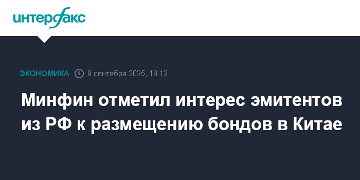 Москва. 8 сентября. INTERFAX.RU - Минфин РФ видит интерес российских эмитентов к размещению облигаций на рынке Китая, обсуждает этот вопрос, сообщил замминистра финансов Иван Чебесков.