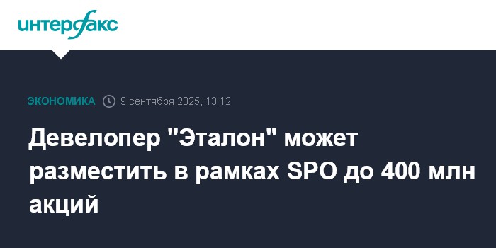 Девелопер "Эталон" может разместить в рамках SPO до 400 млн акций