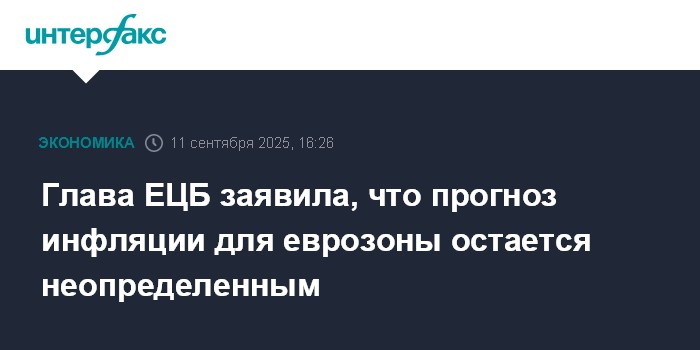 Глава ЕЦБ заявила, что прогноз инфляции для еврозоны остается неопределенным