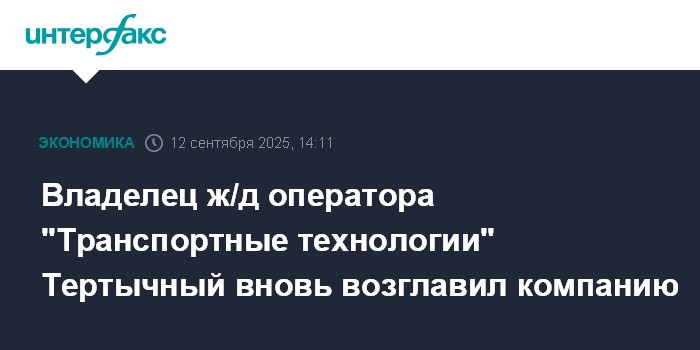 Москва. 12 сентября. INTERFAX.RU - Владелец железнодорожного оператора ООО "Транспортные технологии" Сергей Тертычный вновь возглавил компанию.