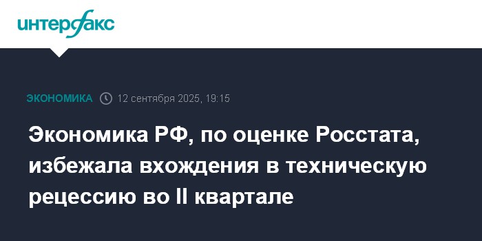 Экономика РФ, по оценке Росстата, избежала вхождения в техническую рецессию во II квартале