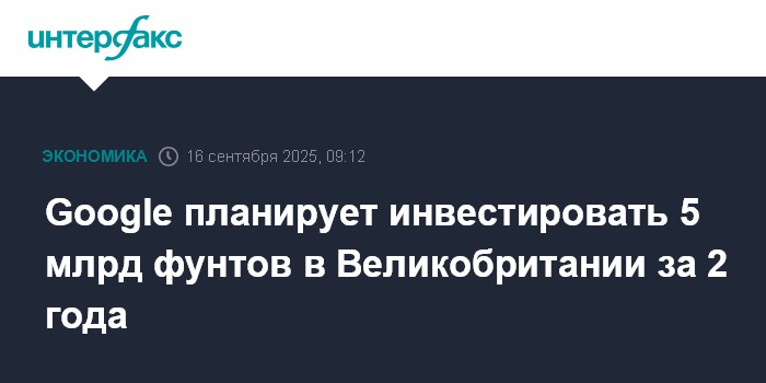 Москва. 16 сентября. INTERFAX.RU - Google планирует вложить 5 млрд фунтов ($6,8 млрд) в Великобританию в течение следующих двух лет, говорится в заявлении компании.