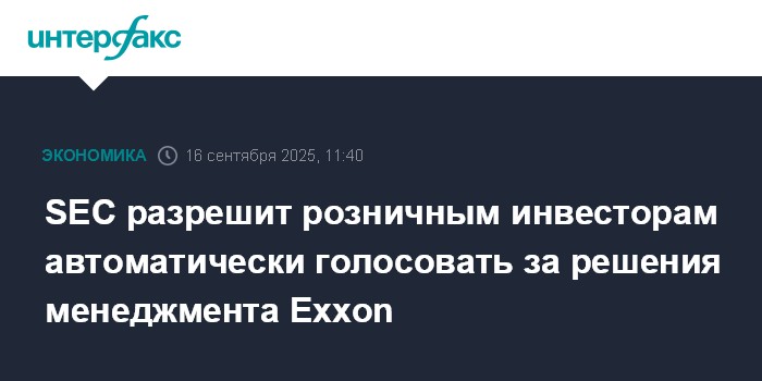 Exxon до начала сезона голосования по доверенности в 2026 году планирует предоставить розничным инвесторам возможность автоматически голосовать в соответствии с позицией руководства компании, если не будет выбрано иное.