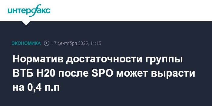 Норматив достаточности группы ВТБ Н20 после SPO может вырасти на 0,4 п.п