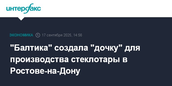 "Балтика" создала "дочку" для производства стеклотары в Ростове-на-Дону