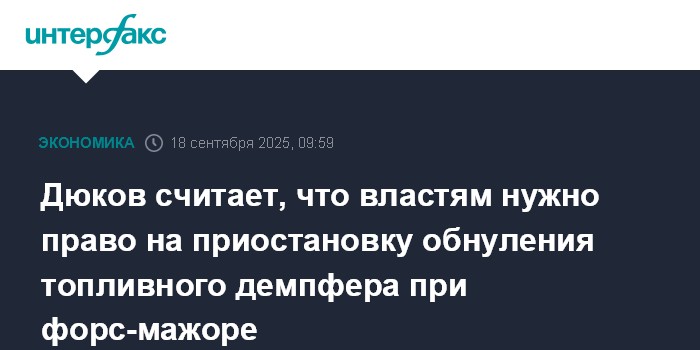 Москва. 18 сентября. INTERFAX.RU - Правительство РФ должно иметь право на приостановку обнуления топливного демпфера в условиях форс-мажорных обстоятельств. Такое мнение высказал глава "Газпром нефти" Александр Дюков журналистам в кулуарах Промышленно-энергетического форума (TNF-2025).