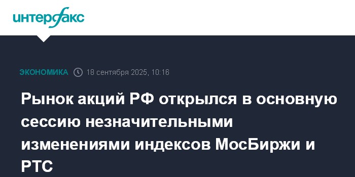 Рынок акций РФ открылся в основную сессию незначительными изменениями индексов МосБиржи и РТС