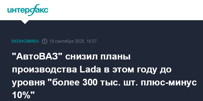Москва. 18 сентября. INTERFAX.RU - Объем производства автомобилей Lada в РФ в 2025 году составит более 300 тыс. единиц с учетом выпуска Lada Iskra на петербургском автозаводе. Об этом сообщил журналистам президент АО "АвтоВАЗ" Максим Соколов.