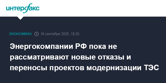 Энергокомпании РФ пока не рассматривают новые отказы и переносы проектов модернизации ТЭС