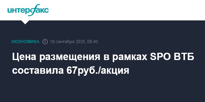 Цена размещения в рамках SPO ВТБ составила 67руб./акция
