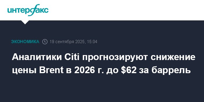 Аналитики Citi прогнозируют снижение цены Brent в 2026 г. до $62 за баррель