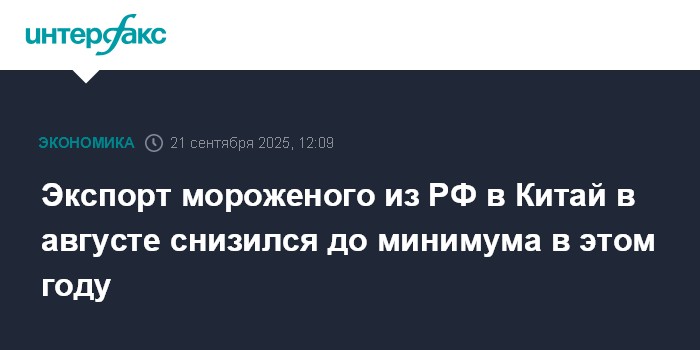 Экспорт мороженого из РФ в Китай в августе снизился до минимума в этом году