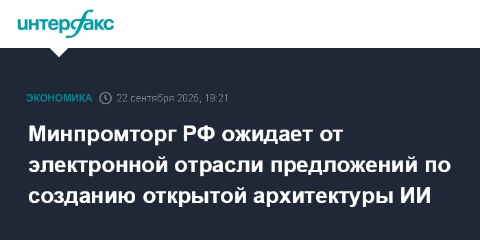 Москва. 22 сентября. INTERFAX.RU - Минпромторг РФ ожидает от отрасли предложений по подготовке нормативной правовой базы в части создания открытой архитектуры решений в области искусственного интеллекта, заявил замглавы Минпромторга Василий Шпак в ходе форума "Микроэлектроника 2025".