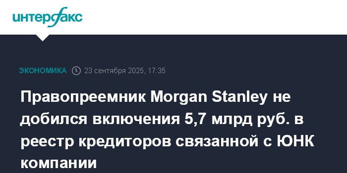 Правопреемник Morgan Stanley не добился включения 5,7 млрд руб. в реестр кредиторов связанной с ЮНК компании