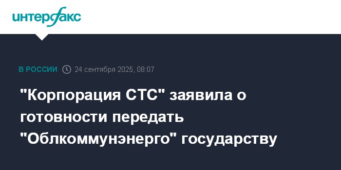 "Корпорация СТС" заявила о готовности передать "Облкоммунэнерго" государству