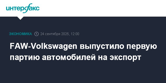 Москва. 24 сентября. INTERFAX.RU - FAW-Volkswagen, совместное предприятие германской Volkswagen и китайской FAW, выпустило на предприятии в Чанчуне первую партию автомобилей, предназначенных для экспорта, сообщает агентство "Синьхуа".