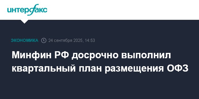 Минфин РФ досрочно выполнил квартальный план размещения ОФЗ