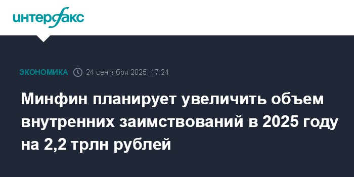 Минфин планирует увеличить объем внутренних заимствований в 2025 году на 2,2 трлн рублей