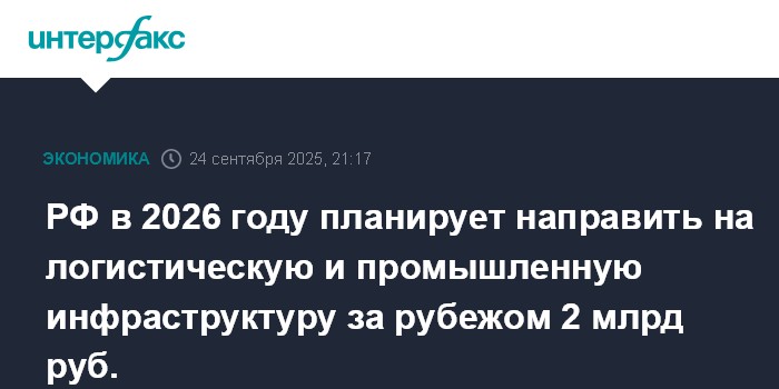 РФ в 2026 году планирует направить на логистическую и промышленную инфраструктуру за рубежом 2 млрд руб.