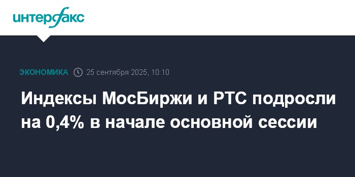 Индексы МосБиржи и РТС подросли на 0,4% в начале основной сессии
