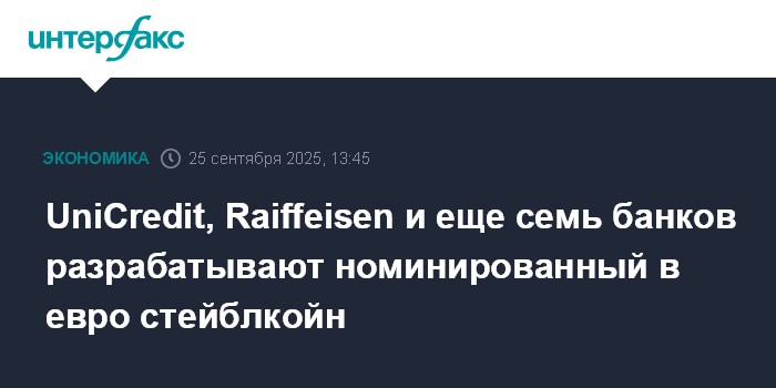 Москва. 25 сентября. INTERFAX.RU - Итальянские UniCredit и Banca Sella, нидерландский ING Groep, германский DekaBank, бельгийский KBC Group, датский Danske Bank, шведский SEB, испанский CaixaBank и австрийский Raiffeisen Bank International объединили усилия для разработки номинированного в евро стейблкойна (общее название криптовалют, которые обеспечены национальными валютами и высококачественными ценными бумагами - ИФ), говорится в совместном сообщении банков.