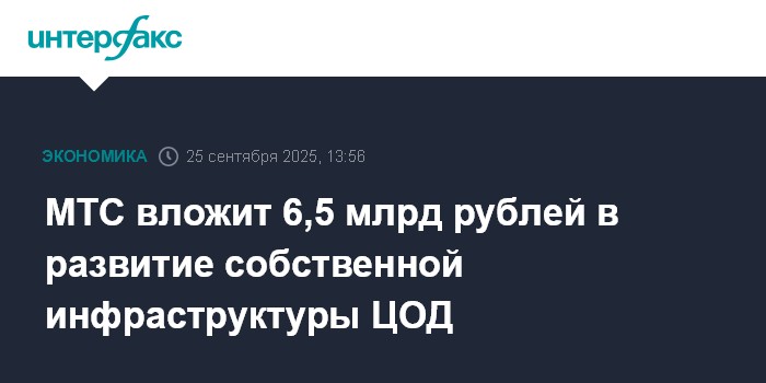 Москва. 25 сентября. INTERFAX.RU - ПАО "МТС" инвестирует 6,5 млрд рублей в развитие собственной инфраструктуры центров обработки данных в ближайшие годы, сообщил глава MWS Cloud (MTS Web Services, входит в "Экосистему МТС) Игорь Зарубинский .