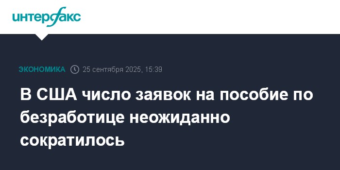Москва. 25 сентября. INTERFAX.RU - Количество американцев, впервые обратившихся за пособием по безработице, на прошлой неделе уменьшилось на 14 тысяч - до 218 тысяч, сообщило Минтруда США.