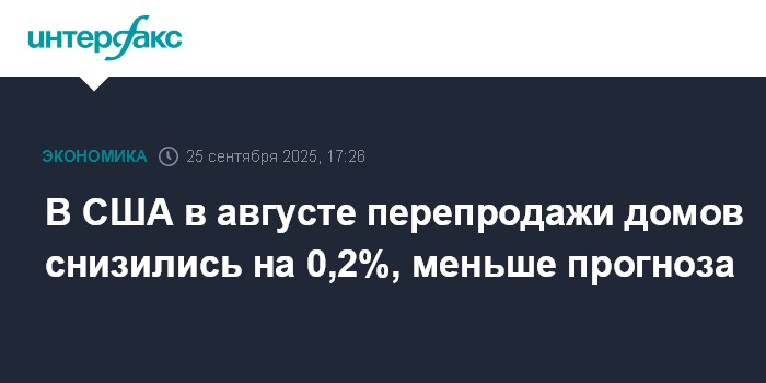 В США в августе перепродажи домов снизились на 0,2%, меньше прогноза