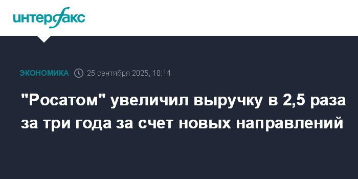 Москва. 25 сентября. INTERFAX.RU - Выручка "Росатома" за три года выросла в 2-2,5 раза за счет новых направлений, сообщил гендиректор госкорпорации Алексей Лихачев.