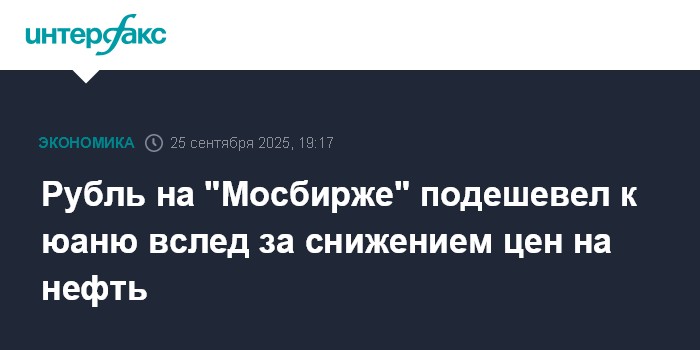 Москва. 25 сентября. INTERFAX.RU - На "Московской бирже" в четверг рубль подешевел к юаню на фоне негативной динамики цен на нефть.