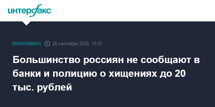 Большинство россиян не сообщают в банки и полицию о хищениях до 20 тыс. рублей