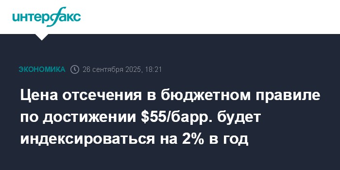 Цена отсечения в бюджетном правиле по достижении $55/барр. будет индексироваться на 2% в год