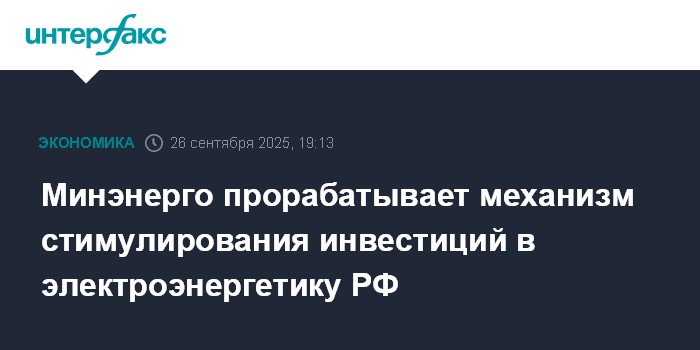 Минэнерго прорабатывает механизм стимулирования инвестиций в электроэнергетику РФ
