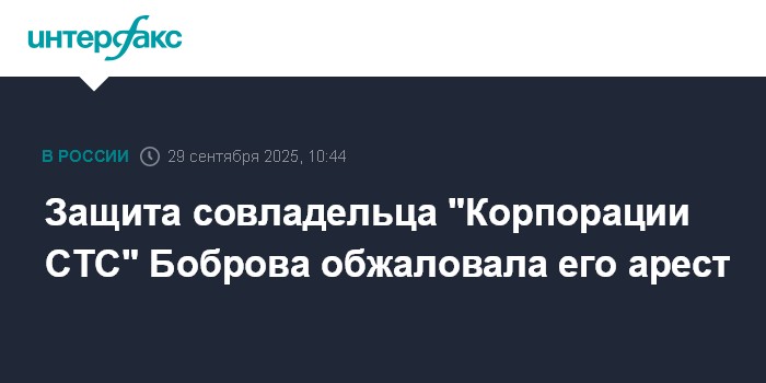 Защита совладельца "Корпорации СТС" Боброва обжаловала его арест